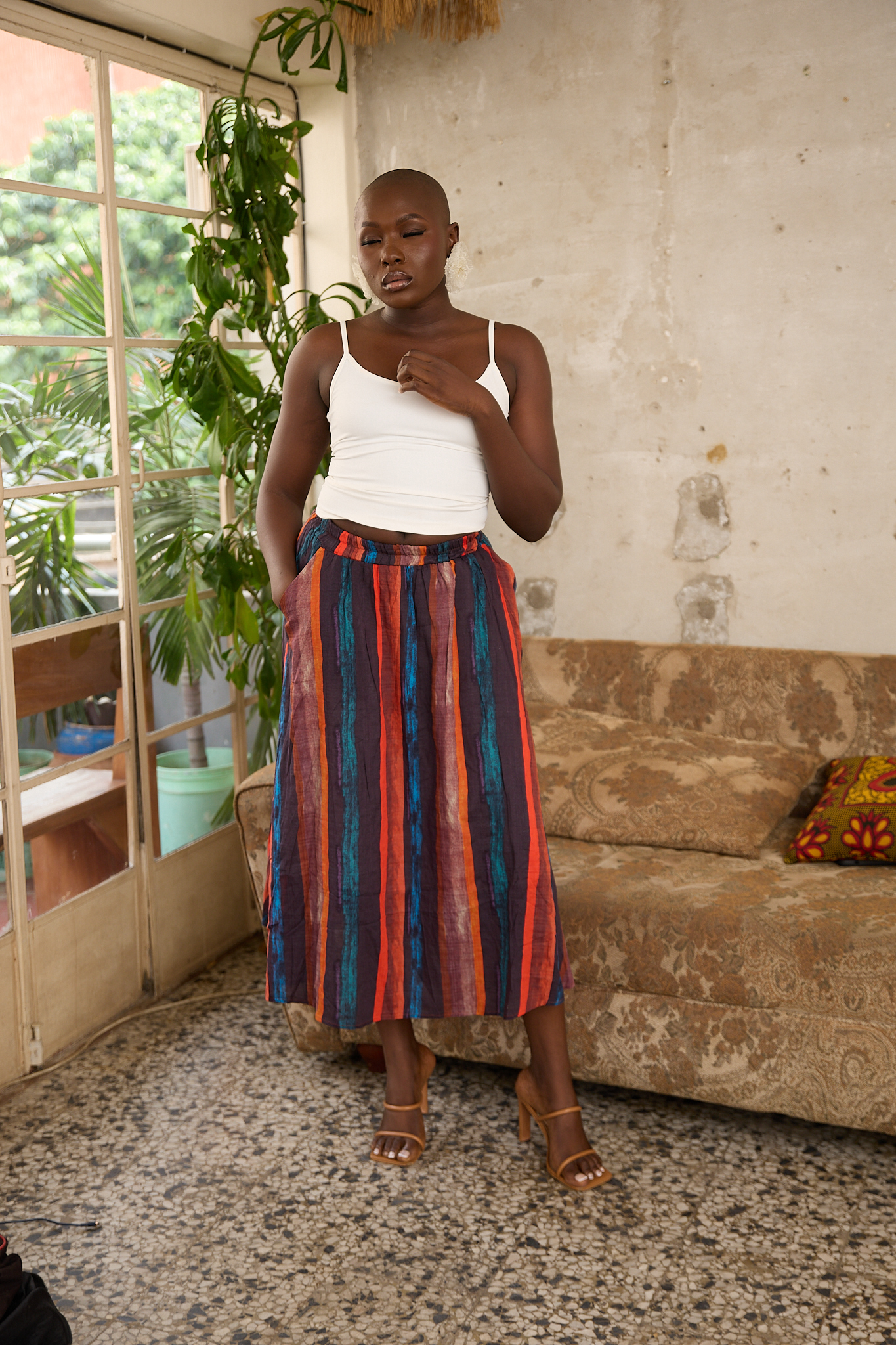 The Aurora Skirt is bold yet graceful ,a statement piece that reflects the beauty of color, flow, and Shakara Ease.